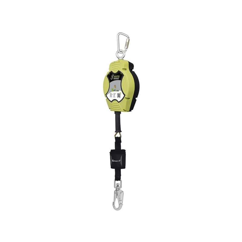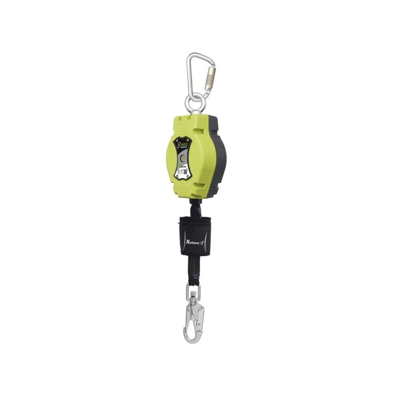 Pour utilisation verticale et horizontale. Boîtier en polymère haute résistance intégrant une anse de portage et une fenêtre facilement retirable pour avoir accès au mécanisme intérieur. Fenêtre pour le contrôle visuel des composants internes, sans ouverture complète du boîtier. Avec absorbeur d'énergie. Système frein intégré. Pour utilisateur de maxi 140 kg en utilisation verticale et horizontale. L'antichute à câble intègre une poignée de préhension. Norme : CE Cat III - EN 360