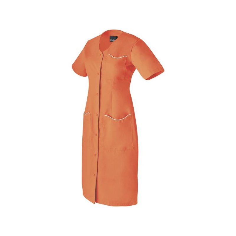 65% polyester 35% coton, 210 g/m². Sans col. 1 poche poitrine, 2 poches basses. Fentes côtés, fermeture centrale par 7 pressions. Longueur : 105 cm Coloris : blanc, parme, rose, vert anis, gris perle Taille : 0 à 6 Norme : CE Cat II - EN 15797