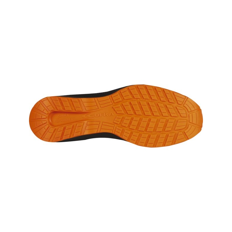 Tige en tissu, respirant. Doublure en tissu polyester indémaillable, respirant, antibactérien, résistant à l'abrasion et absorbant l'humidité. Semelle de propreté en mousse de polyuréthane souple. Perforée, antistatique, anatomique, conçue pour soutenir la voûte plantaire, absorbe la sueur en gardant le pied toujours au sec, assure le maximum du confort et l’absorption de l’énergie d’impact. Semelle d'usure en PU. Surembout en TPU. Embout de sécurité en aluminium. Semelle antiperforation en textile haute ténacité. Coloris : noir/orange Pointure : 39 à 48 Norme : CE Cat II - EN ISO 20345 - S1P SRC - DGUV 112-191