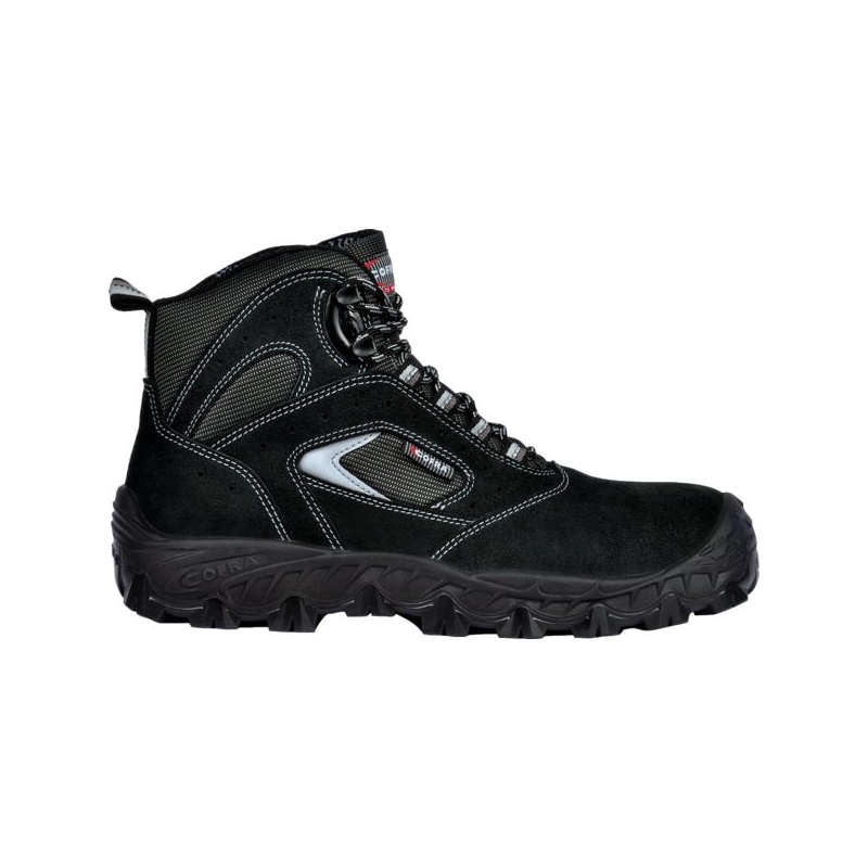 Tige en croûte de cuir velours et insert tissu, respirant. Doublure en polyester, respirant, résistant à l'abrasion. Semelle de propreté en E.V.A et tissu, antistatique. Semelle d'usure en PU bidensité. Embout de sécurité en composite. Semelle antiperforation en textile haute ténacité. Coloris : noir Pointure : 37 à 48 Norme : CE Cat II - EN ISO 20345 - S1P SRC