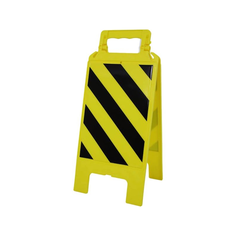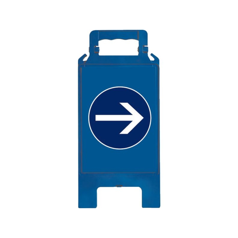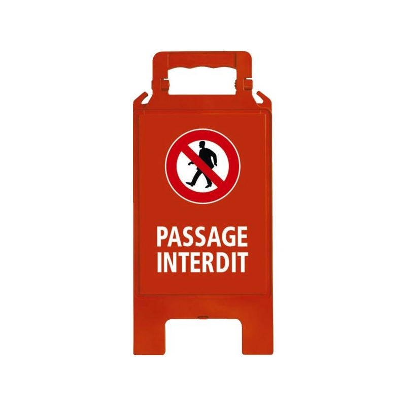 En polypropylène avec renforts de maintien. Utilisation temporaire intérieure et extérieure. Poignée ergonomique, large surface d'impression. Clip de maintien en position ouverte, grande stabilité. Crochets pour chaîne de signalisation. Dimensions (H x l) : 600 x 275 mm Épaisseur (plié) : 23 mm