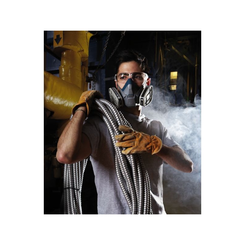 Pièce faciale en silicone. Harnais ajustable. Équipé d'une soupape expiratoire centrale qui réduit l'humidité et la chaleur à l'intérieur du masque. Mise en place et retrait aisé lors de l'entrée ou de la sortie d'une zone contaminée, grâce au système Quick Latch. À équiper de filtres latéraux fixés par système 'Click' à baïonnette. Confortable, léger, entretien facile. Polyvalence d'emploi : filtres antigaz et/ou à particules Poids : 265 g Taille : standard Norme : CE Cat III - EN 140