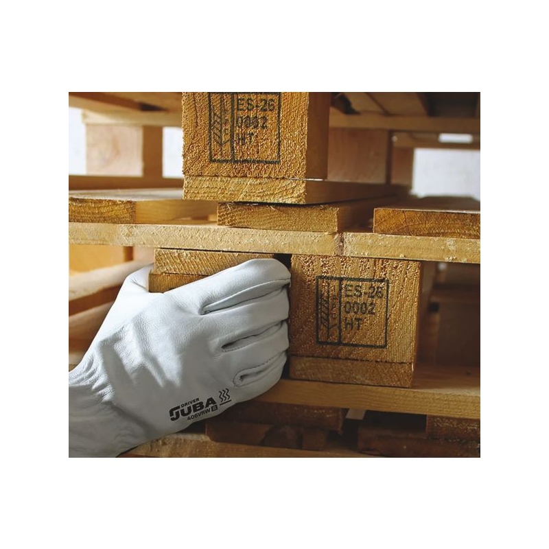 Tout cuir fleur de bovin. Montage américain (pouce palmé), serrage élastique dans le dos. Environnement : sec Applications métiers : conduite, travaux d'usage général, assemblage, services publics, agriculture Taille : 7 à 11 Norme : CE Cat II - EN 388 (2121X) - EN 407 (X1XXX)