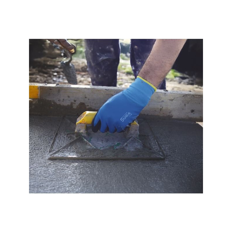 Enduction nitrile double couche : - 1ère enduction : latex sur toute la main - 2ème enduction : latex mousse sur la paume Solide préhension dans les environnements secs et humides, entièrement enduit pour une plus grande étanchéité. Bonne résistance à l’abrasion et à la perforation, double revêtement sur le pouce. Support tricoté sans couture en nylon, jauge 15. Contact alimentaire. Environnement : mouillé, très salissant Applications métiers : construction, maçonnerie, travaux agricoles, jardinage, montage industriel, maintenance Taille : 8 à 10 Norme : CE Cat II - EN 388 (2131X)