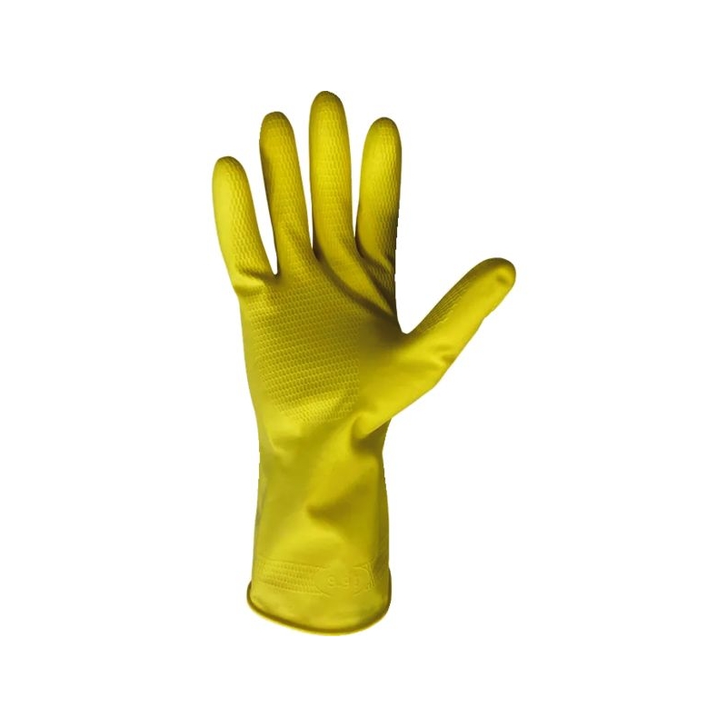 Latex naturel. Finition nid d'abeilles. Contact alimentaire. Environnement : chimique, mouillé, humide Applications métiers : usage domestique, cuisine, nettoyage, alimentaire, agriculture, laboratoires, maintenance légère Longueur : 30 cm Épaisseur : 0,52 mm Taille : 6/6.5 (6.5) à 10/10.5 (10.5) Norme : CE Cat III - EN 388 (1010X) - EN 374-1 type A (KLMPST) - EN 374-5