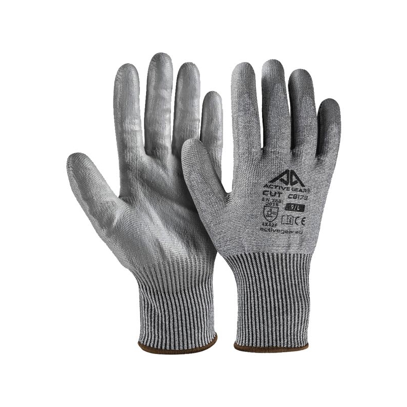 Enduction polyuréthane sur paume et bouts de doigts. Support tricoté en fibres HPPE, sans couture, jauge 13. Dos aéré, poignet tricot élastique. Environnement : sec, légèrement humide Applications métiers : travaux d'assemblage, maintenance, industrie du bois, logistique et entrepôts, manipulation de tôles, manipulation de pièces Taille : 7 (S) à 11(XXL) Norme : CE Cat II - EN 388 (4X42F)