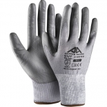 Enduction polyuréthane sur paume et bouts de doigts. Support tricoté en fibres nylon®, spandex, HPPE, sans couture, jauge 18. Dos aéré, poignet tricot élastique. Environnement : humide, sec Applications métiers : travaux d'assemblage, maintenance, industrie du bois, logistique et entrepôts, manipulation de tôles, manipulation de petites pièces Taille : 6 (XS) à 11(XXL) Norme : CE Cat II - EN 388 (4X41C)