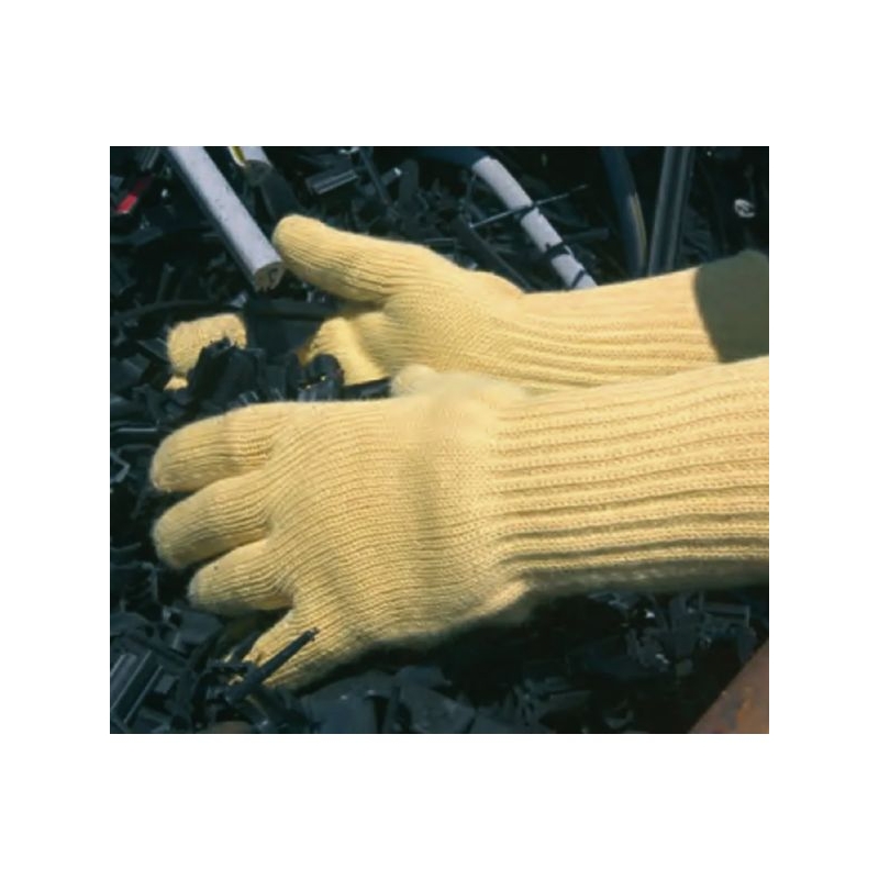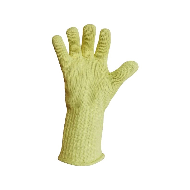 Tricoté 100 % Kevlar®, jauge 7. Doublé 100 % coton. Environnement : chaud, sec Applications métiers : industrie métallurgique, cristalleries, fourneaux, industrie de l’aluminium, travaux nécessitant une protection à la coupure et à la chaleur de contact (> 350 °C pendant 15 secondes) Longueur : 34 cm Taille : 10 Normes : CE Cat III - EN 407 (43432X)