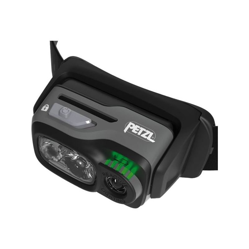 Rechargeable. 3 modes d'éclairage : Standard Lighting, Reactive Lighting® et éclairage rouge. Travaux à portée de mains jusqu'à : intensité 100 lm - distance 35 m - autonomie 10 à 50h. Proximité jusqu'à : intensité 300 lm - distance 55 m - autonomie 4 à 40h. Déplacement jusqu'à : intensité 900 lm - distance 150 m - autonomie 2 à 30h. Vision lointaine jusqu'à : intensité 550 lm - distance 150 m - autonomie 4 à 50h. Réserve de 2h intensité 10 ou 15 lm. Équipé d'un capteur de luminosité ambiante (REACTIVE LIGHTING). Pilotage autonome de l'éclairage. Bouton unique avec fonction verrouillage. Rechargeable via USB avec jauge d'énergie. Fournie avec platine pour fixation sur casques Petzl et autres casques en fonction de la compatibilité. Bandeau élastique confortable et lavable. Étanchéité : IPX4 (résistant aux intempéries) Alimentation : batterie lithium-ion Type de faisceau : mixte ou focalisé Poids : 123 g