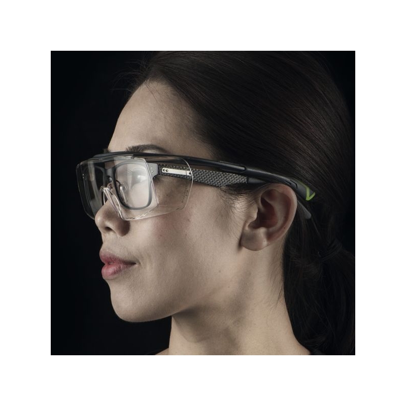 Monture en polycarbonate. Protections latérales, supérieures et inférieures. Branches étirables. Oculaires en polycarbonate. Poids : 37 g Norme : CE Cat II - EN 166