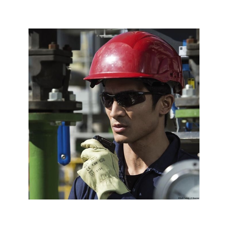 Monture légère et confortable. Branches en nylon avec inserts TPE. Oculaires en polycarbonate. Branches antiglisse Tipgrip, nez antiglisse. Antistatique. Poids : 21 g Norme : CE Cat II - EN 166 Fourni avec étui microfibre.
