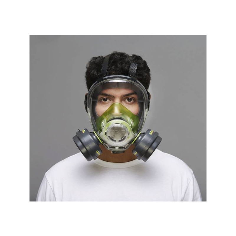 Écran en polycarbonate, traité pour antibuée et antirayures. Champ visuel optimisé. Valve munie d'un cache anti-éclaboussement, conçue pour ne pas générer de la buée. Harnais 6 points, pour un meilleur équilibre. Le système de raccord à vis b-lock, très intuitif permet une prise rapide et sûre sur le masque dispose d’une rétroaction de verrouillage permettant à l’utilisateur de savoir si le filtre est correctement placé. L’orientation des filtres sur le masque permet une meilleure répartition du poids et un meilleur champ de vision. Facile et rapide à enlever pour le nettoyage. Polyvalence d'emploi : filtres antigaz et/ou à particules Poids : 580 g Taille : standard Norme : CE Cat III - EN 136 - EN 166