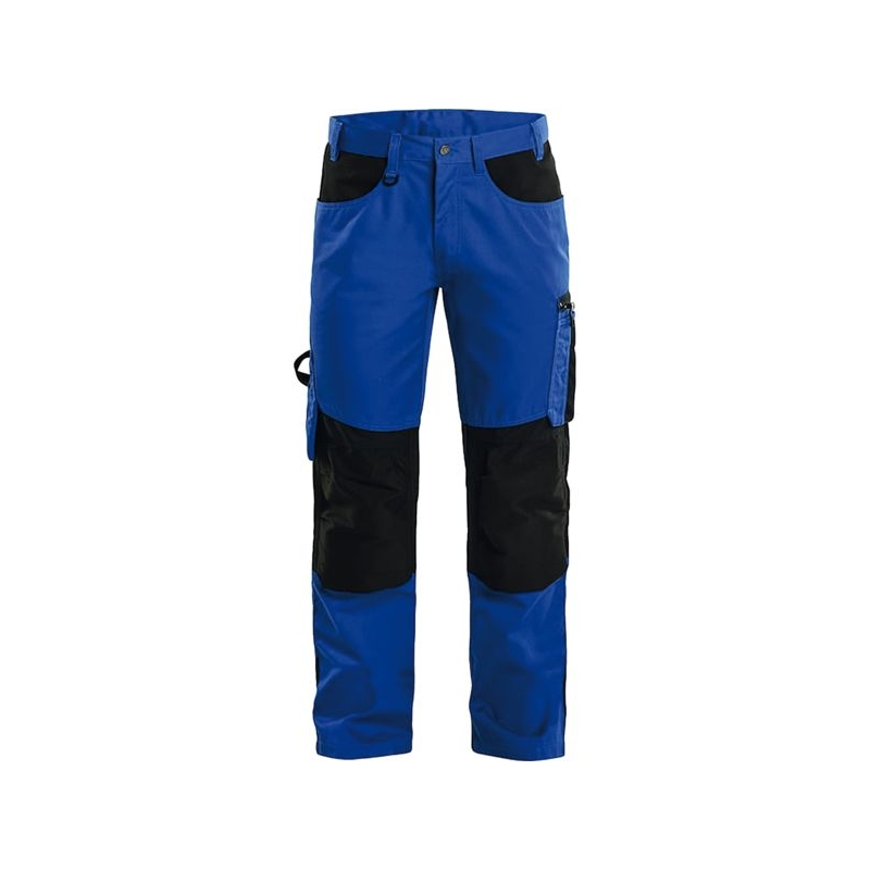 65% polyester 35% coton croisé, 300g/m² Parties stretch à l'arrière et aux genoux. Larges passants de ceinture à l'arrière. Boutons métalliques. Anneau en D à la taille. 2 grandes poches avant, 2 poches arrières à soufflet renforcées en Cordura®, 1 poche téléphone en stretch, 1 sangle porte-marteau, 1 poche mètre, 1 poche stylo et 1 porte-couteaux. Poches genoux avec du stretch renforcé en Cordura® (ref 19998 à commander séparément). Coloris : beige/noir, marine/noir, gris clair/noir, gris foncé/noir, noir/jaune fluo, noir/rouge, noir/gris clair Taille : 38 à 56 Norme : CE Cat II - EN 14404 porté avec genouillères