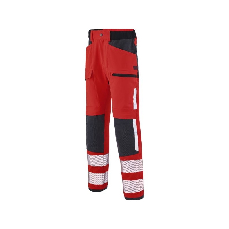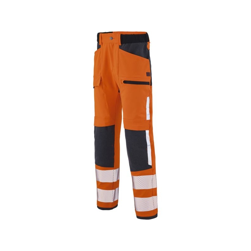 Tissu stretch bidirectionnel fluo : 92% polyester 8% élasthanne, ripstop - 235 g/m². Tissu stretch bidirectionnel contraste : 92% polyester 8% élasthanne, ripstop - 155 g/m². Ceinture élastiquée fermée par bouton, braguette fermeture à glissière. 2 poches cavalières, 1 poche cuisse avec fermeture à glissière, 1 poche cuisse avec rabat, poches revolver, poche mètre. Poches genoux fermées par velcro pour insérer les genouillères réf. 19180 (à commander séparément). Bandes rétroréfléchissantes segmentées sur les jambes. Entretien : lavage ménager Entrejambe : 82 cm + ourlet de 5 cm Coloris : orange fluo/gris, jaune fluo/gris, rouge fluo/gris Taille : 38 à 60 Norme : CE Cat II - EN ISO 20471 (2) - EN 14404 avec les genouillères réf. 19180