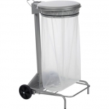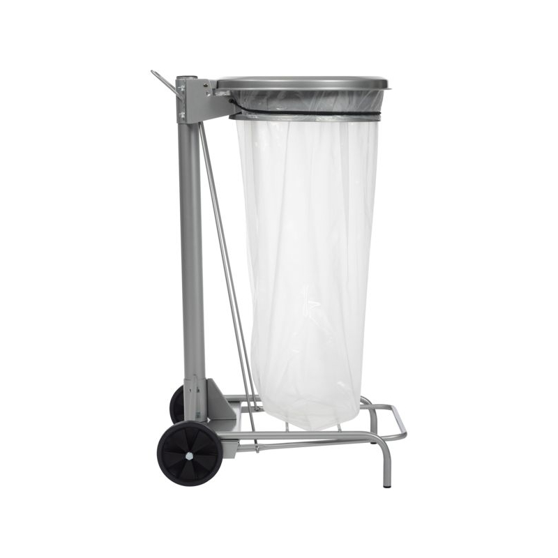 En acier poudré anti-UV gris métal permettant une utilisation intérieure. Large pédale métal pour ouverture du couvercle. Maniable grâce à sa poignée de transport et ses roues lisses Ø 150 mm. Maintien du sac par ceinture élastique. Particulièrement adapté au milieu médical/cuisine. Adapté à la méthode HACCP. S'utilise avec des sacs de 110 l.