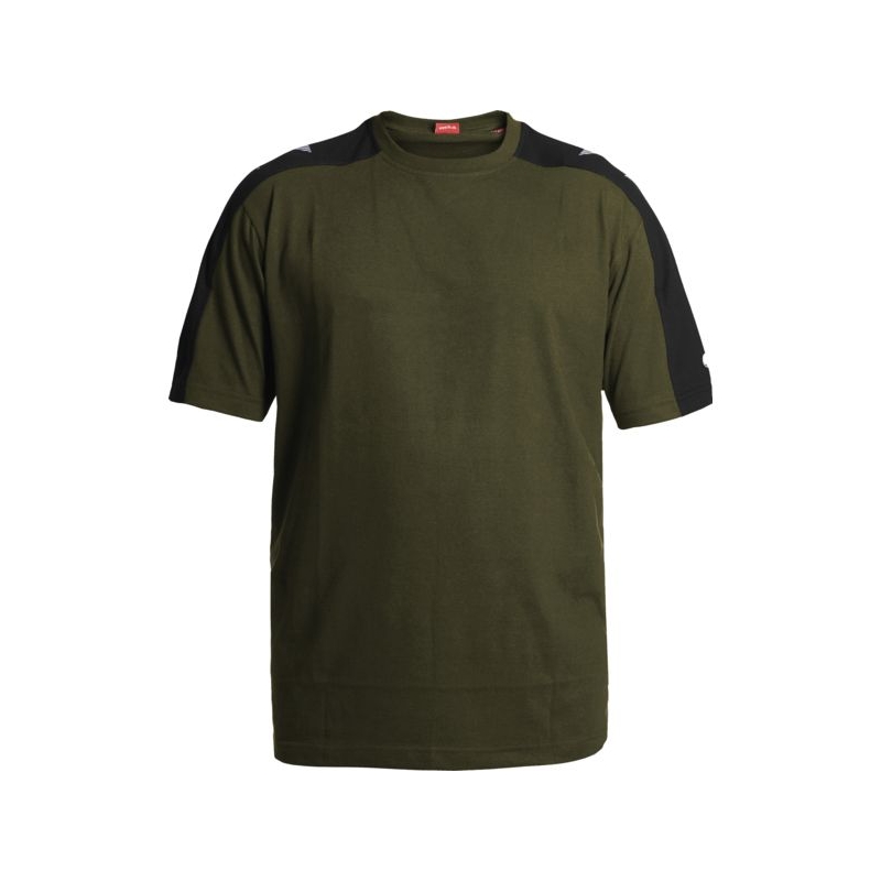 60% coton 40% polyester - Jersey, 180 g/m². Manches courtes. Col rond, bandes rétroréfléchissantes sur les épaules. Entretien : lavage ménager Coloris : bleu/noir, bleu marine/bleu roy, gris/noir, gris/rouge, kaki/noir, noir/gris, marron/gris, rouge/gris, vert/noir Taille : XS à 4XL