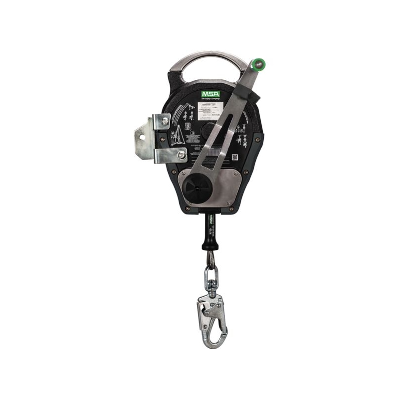 Dispositif de sauvetage assurant une protection antichute rapide, facile et intuitive accompagnée d'une fonction intégrée de récupération bidirectionnelle. Ne constitue pas uniquement un système antichute sa fonction de récupération permet aussi au travailleur accidenté de remonter ou de descendre vers un endroit sûr. La poignée de transport ergonomique en acier inoxydable peut servir de point d'ancrage. Capacité d'utilisateur jusqu'à 140 kg pour les personnes. L'absorbeur d'énergie intégré maintient les forces en dessous de 6 kN. Commutateur avec code couleur pour l'activation du mécanisme de sauvetage. Boîtier en aluminium robuste avec amortisseurs de chocs thermoplastiques. Mousqueton pivotant en acier zingué, ouverture de 21 mm, avec indicateur de charge. Manivelle pliable et escamotable. Câble acier inoxydable diamètre 5 mm : 15 m de long Poids : 16,3 kg (support inclus) Norme : CE Cat III - EN 360 - EN 1496 classe B