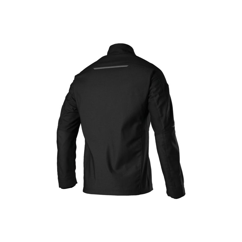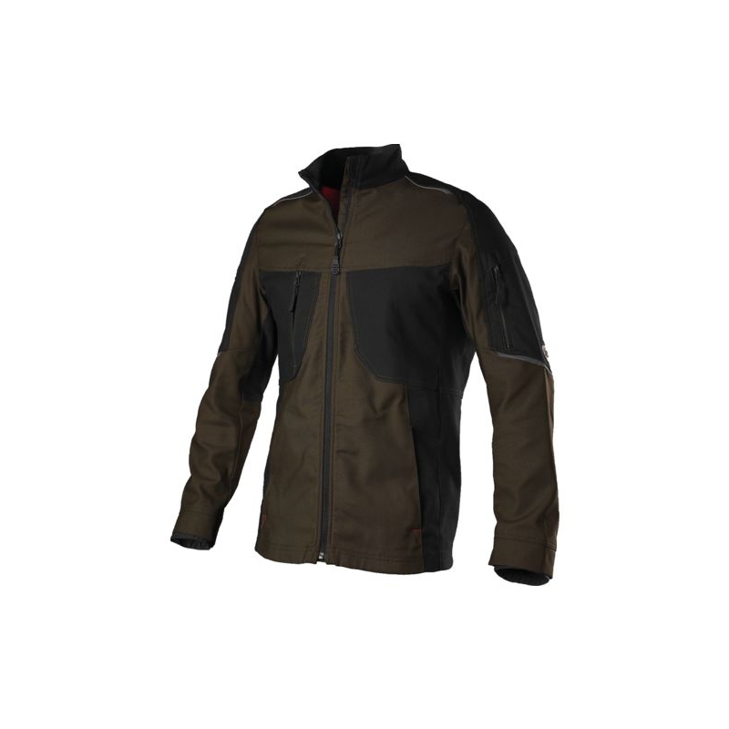 65% polyester recyclé 35% coton de production durable, 285 g/m². Col officier doublé, fermeture à glissière avec protège-menton en polaire. 1 poche poitrine, 2 grandes poches latérales et 1 poche sur manche avec fermeture à glissière. Plus grande liberté de mouvement grâce aux empiècements extensibles sous les aisselles. Poignets coupe-vent, éléments réfléchissants. Coloris : bleu nuit/noir, noir, marron/noir, gris anthracite/noir, olive/noir, bleu roi/noir Tailles : 38/40 à 58/60 Norme : CE Cat II - EN 15797